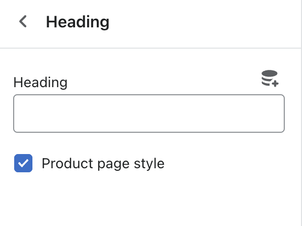 Let's look at a common example. Let's say you want to use a metafield in a text field section in your product page. In order to insert a dynamic source, click on a text field section such as a heading. If you see a little circular icon with a plus sign next to the field, that means you can insert a dynamic source. Click on the icon and select the metafield that you want to connect. The metafield name will appear which means it is connected!